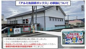 アルミ缶回収ボックスを体育館北側の職員駐車場の端に移設しました。令和5年度の卒業生が制作した看板が目印です。今後は、校地内に入ることなくフェンスの外側からも投入いただけます。お手数をおかけしますが、お持ちいただいた際のビニール袋等からは出して投入いただきますよう、お願いいたします。