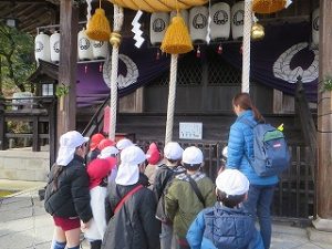 参拝されている方と一緒に、子どもたちも初詣をしました。地域へ出かけて、日本の文化を感じながら気持ちを新たに、2026年もみんなが元気で楽しく過ごせることを願います。