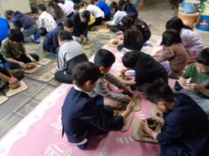 最初は「難しい!」と苦戦していた子も、次第にコツを掴み、思い思いの形をしたお皿や湯呑、置き物を完成させました。