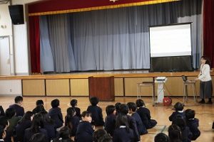 11月21日(金) 兵庫医科大学の方にお越しいただき、介護に関する出前授業を行いました。今回の授業では、高齢者の方々の体の動きを実際に体験するという貴重な機会をいただきました。