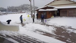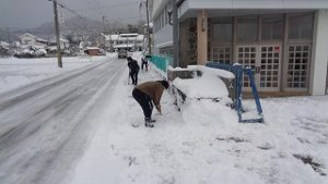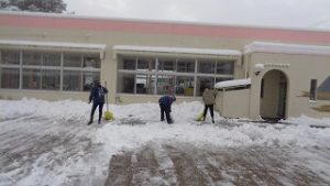 明日の安全な登校と学校生活に向けて、除雪作業を行いました。