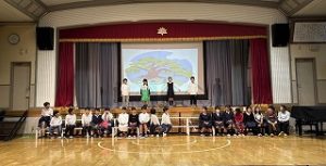 今年度4年生は、子どもたち自身で発表する都道府県を決め、その都道府県ならではの台本を作りました。さらに、スライドやBGM、クイズを使ってお客さんに楽しんでもらえるよう工夫を凝らしてきました。