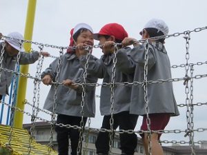 6月26日、篠山幼稚園の友だちと市バスで岡野幼稚園へ行き、一緒に遊びました。ひまわり組さんは昨年に続いての交流で、久しぶりの友だちや先生と出会えてうれしそうでした。今年度、初めての3園交流です。保育室に集まって一人ずつ自己紹介をしました。天候を気にしていたのですが、雨はあがり、プール遊びを楽しむことができました。小学校のプールは広くて気持ちよく、友だちと歓声をあげながら、思いっきり体を動かして遊びました。たくさん遊んだ後は、お家の人に作ってもらったお弁当を食べました。みんなと食べるお弁当はとてもおいしく、あっという間に完食していました。園庭で遊んだ後、みんなとお別れをして幼稚園に戻りました。子どもたちは、次回の交流も楽しみ